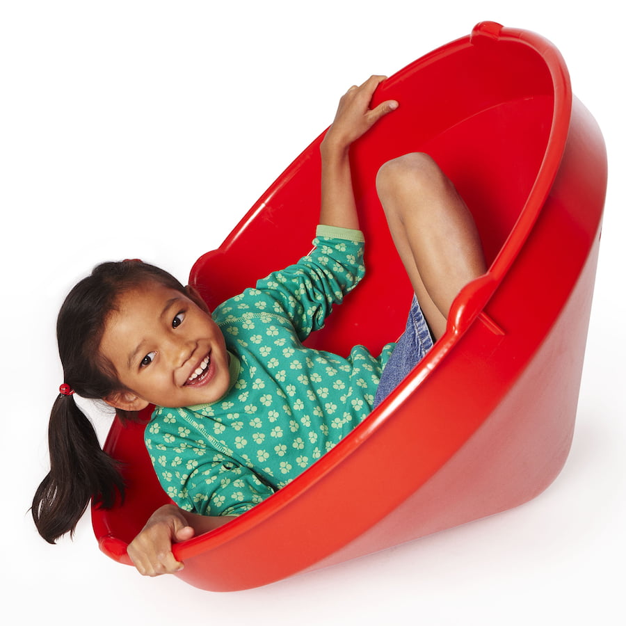 Made of strong plastic for indoor or outdoor play, this giant top can be used by one or two children to rock, spin or make a den.