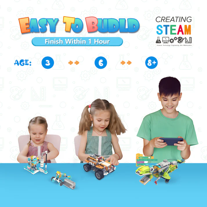 ●【What Can Kids Achieve From Smart Robot – Enjoyable and Educational Experience】Smart Robot STEM Building Toys set is much more than a toy, it’s also a perfect educational learning kit which encourages kids to think, to learn through mechanical structures & electronics knowledge.It requires kids to think scientifically about how the robot can move around with a motor. Children’s hand-on ability, hand-eye coordination and imaginary skills will all be improved by playing with this STEM robot kit.Eventually, what children will achieve from assembling these robots is not only fun time but more significantly, also their self-confidence and excellent logical skills.