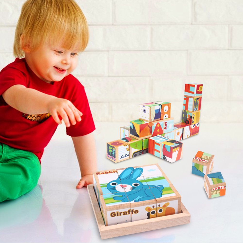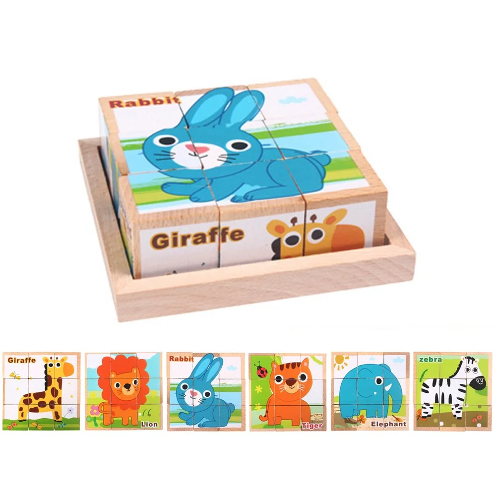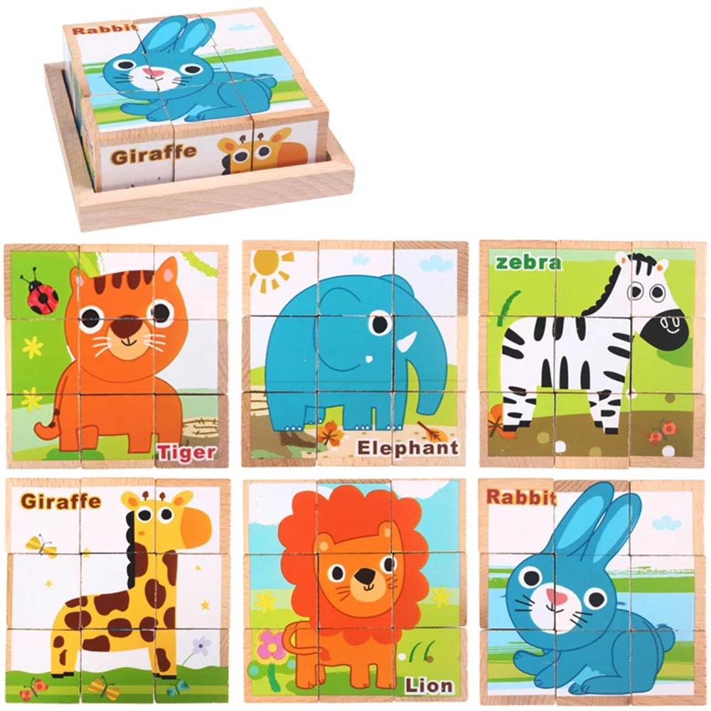Children can build 6 different animal puzzles using the same set of wooden blocks!