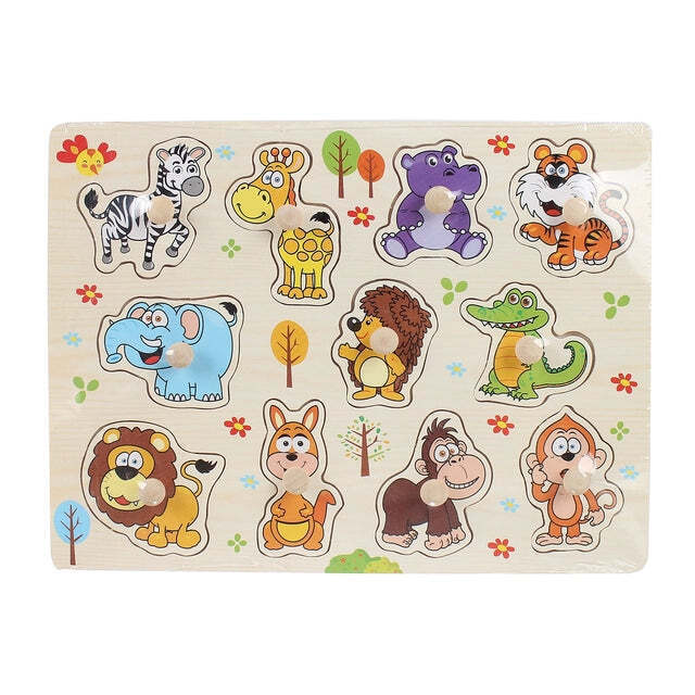 A cheerful wooden puzzle that introduces children to jungle and savannah animals through play. With colorful illustrations and easy-to-grasp pieces, it is ideal for preschool education and creative fun.