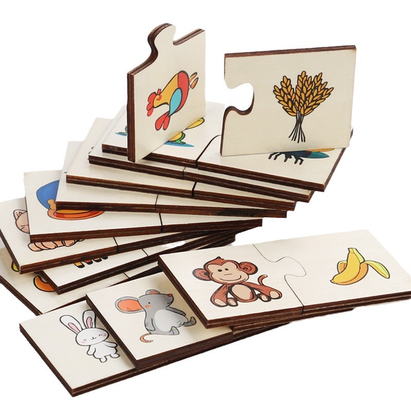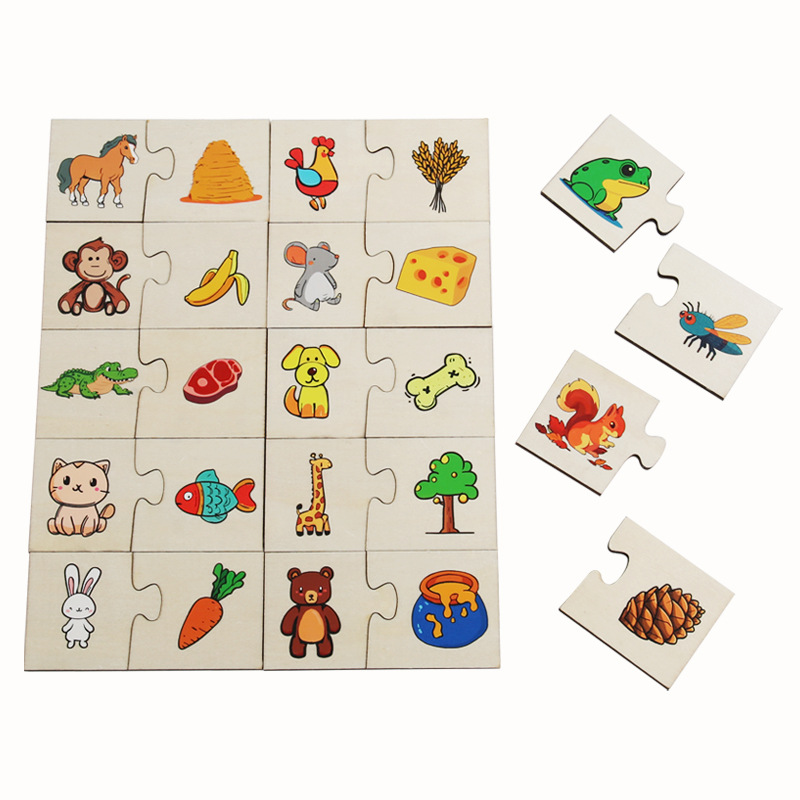 Κάθε κομμάτι του παζλ απεικονίζει ένα ζωάκι ή ένα αντικείμενο της καθημερινότητας (π.χ. μαϊμουδάκι – μπανάνα, ποντικάκι – τυρί, σκυλάκι – κόκαλο), ενθαρρύνοντας τα παιδιά να βρουν τα σωστά ζευγάρια και να κατανοήσουν τη σχέση ανάμεσά τους.