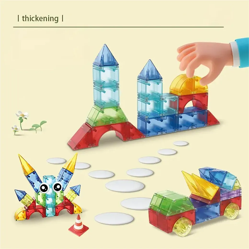 🔹 Καινοτόμος Σχεδιασμός: Τα κομμάτια διαθέτουν ισχυρούς μαγνήτες που συνδέονται εύκολα, επιτρέποντας την κατασκευή μοναδικών σχημάτων και δομών.